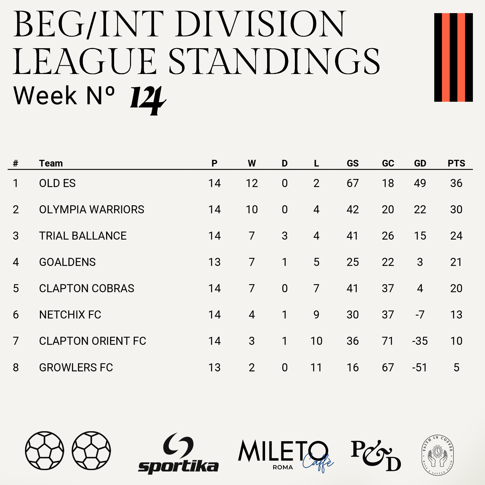 LEAGUE STANDINGS - MABLEY GREEN WEEK 14 STANDINGS LEAGUE TABLESADVANCED LEAGUES View fullsize INTERMEDIATE LEAGUES BEGINNER LEAGUES